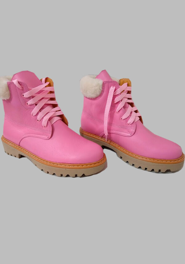 Bota tipo militar rosado y cuello en peluche