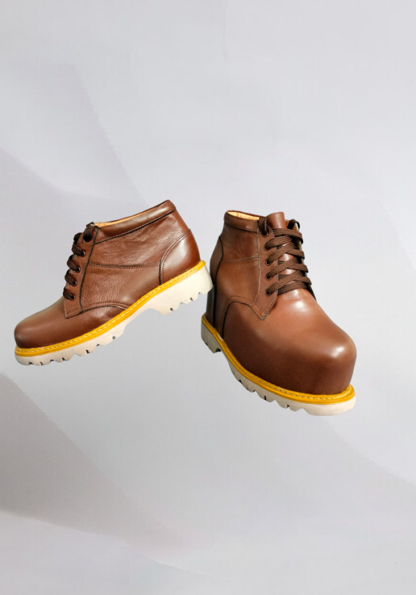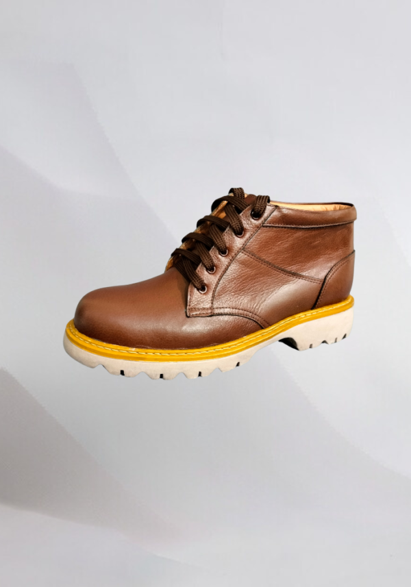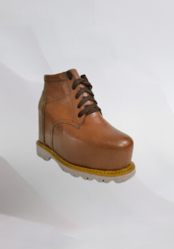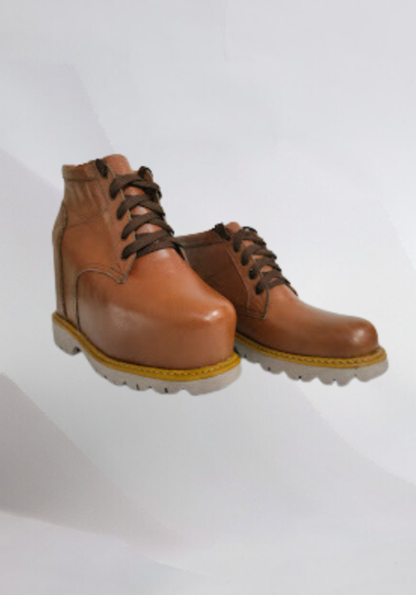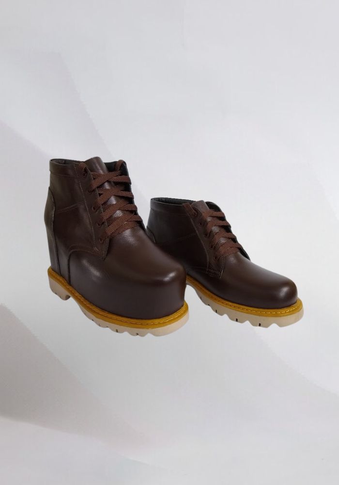 Botas en cuero de diferentes colores a gusto del paciente con realce en miembro inferior derecho, con suela prefabricada en expenso lo que la hace muy liviana y resistente.