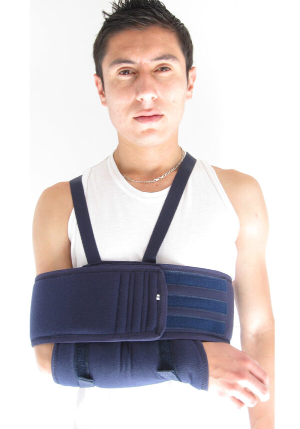 Inicio / Dispositivos de rehabilitación y línea blanda / Cabestrillo adulto con banda inmovilizadora Cabestrillo adulto con banda inmovilizadora Usada en fracturas de antebraso, esguinces, lesiones de hombro Cotizar por WhatsApp